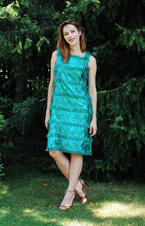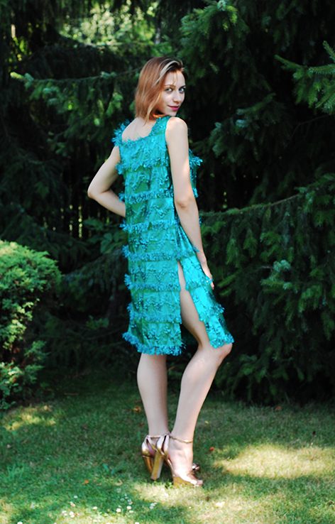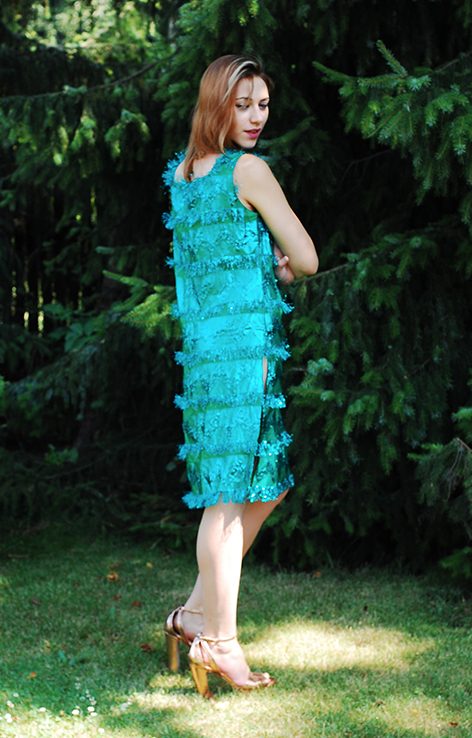 Sylwestrowa błyszcząca sukienka lata 90.