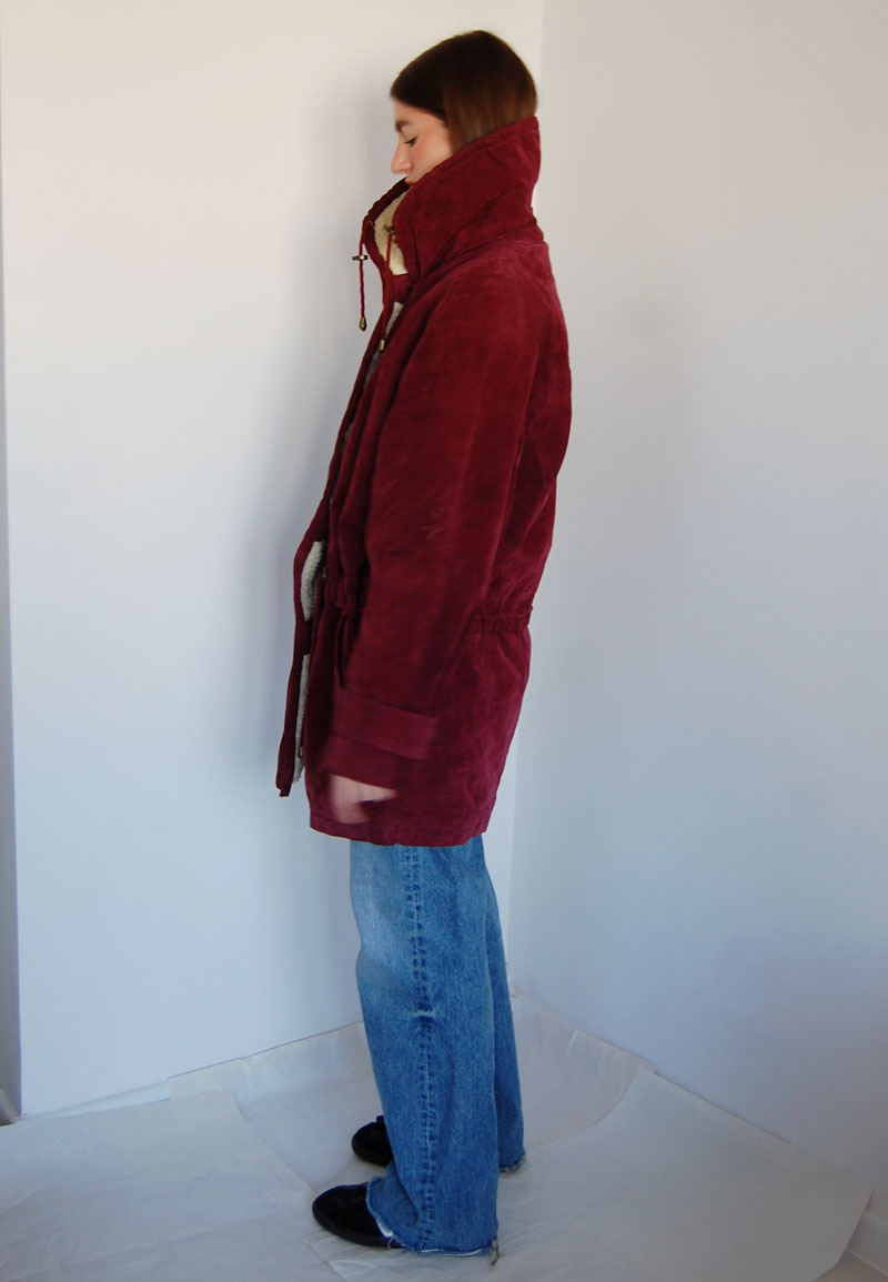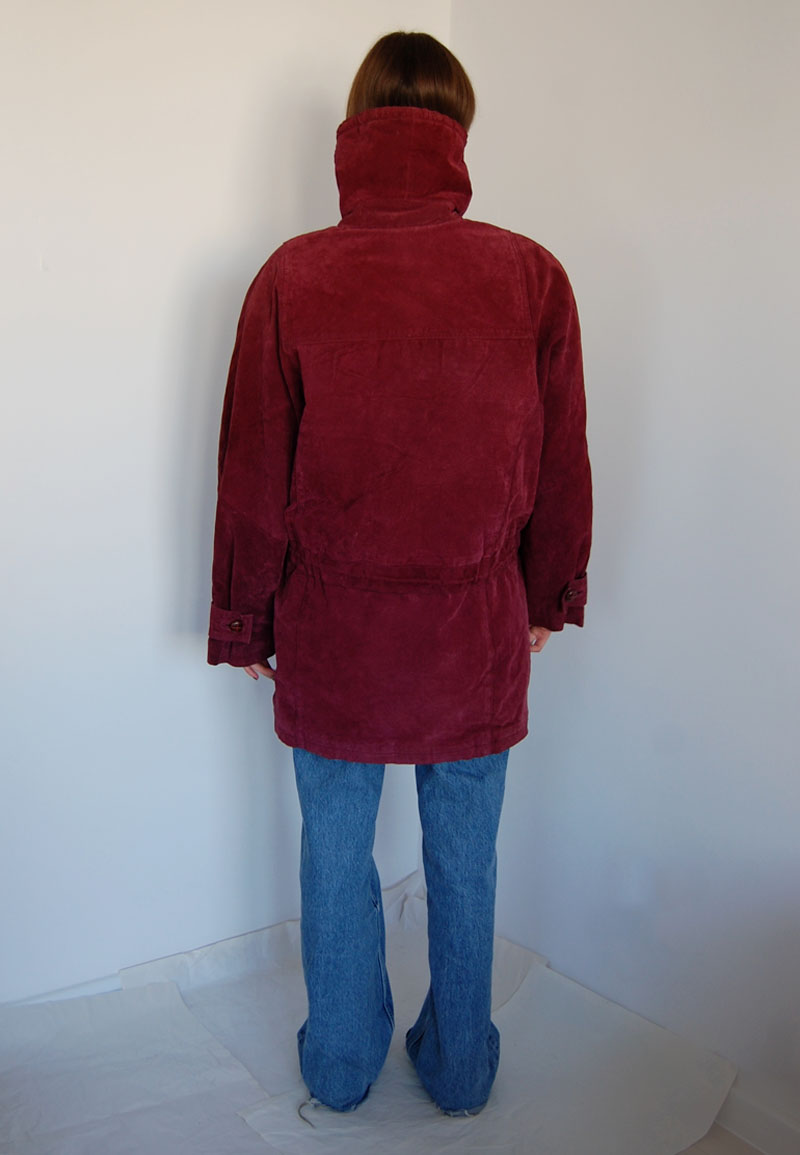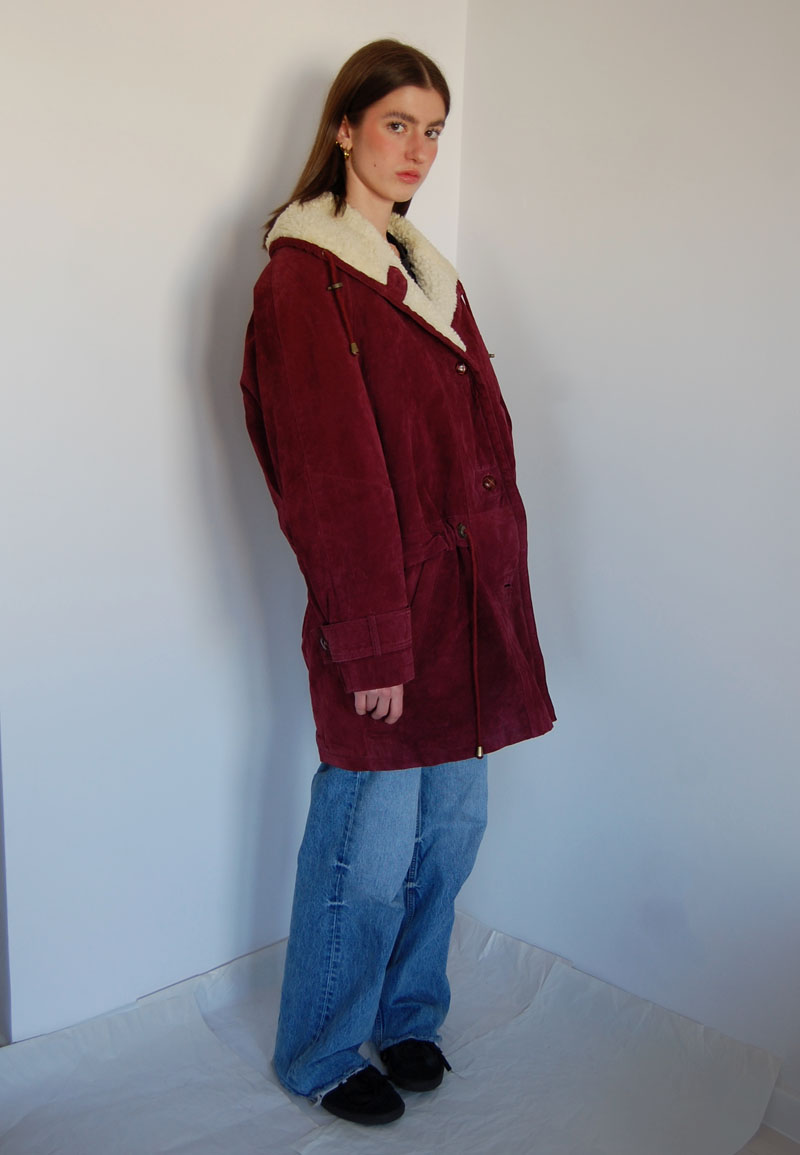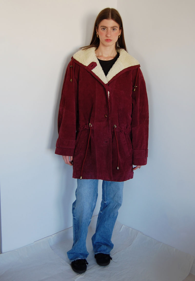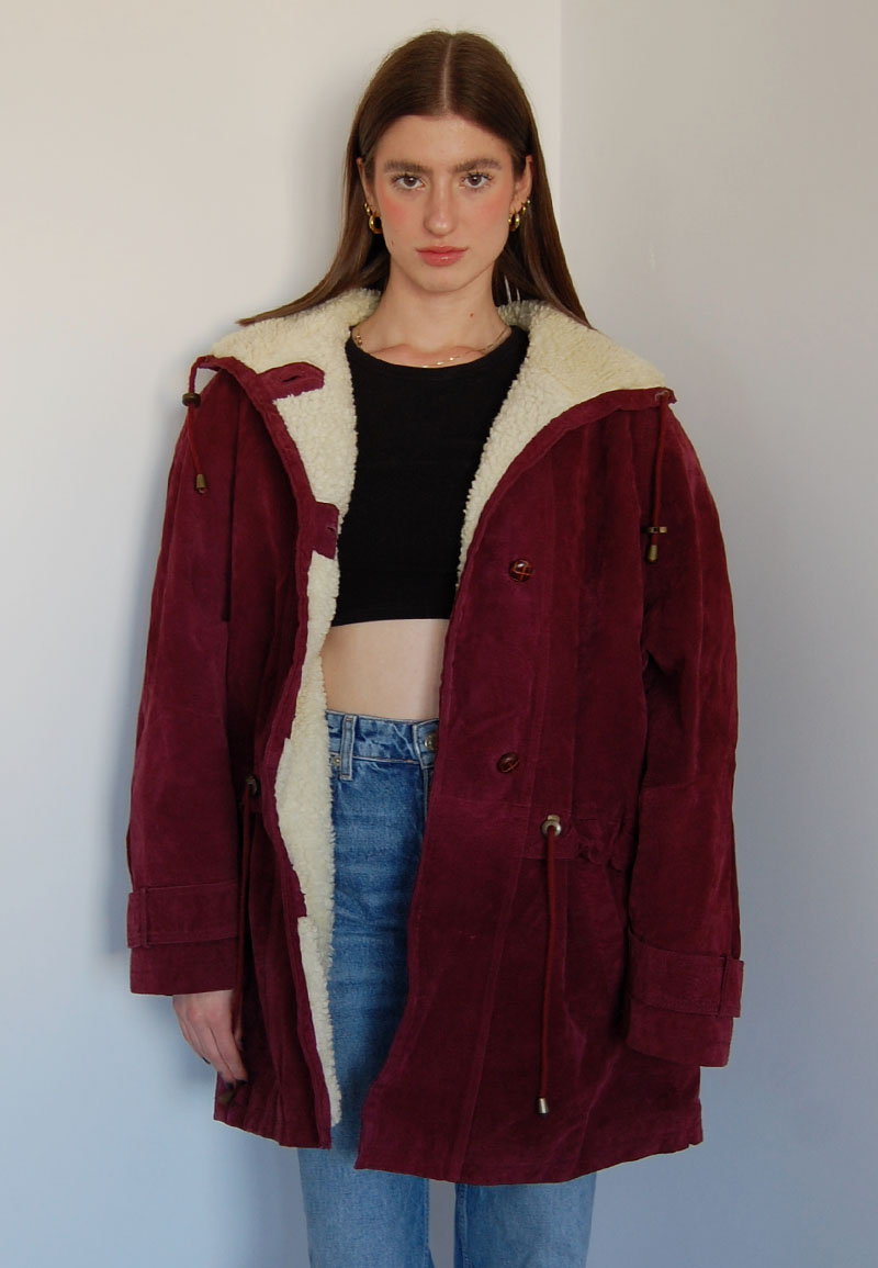 Bordowa zamszowa kurtka ocieplana futerekiem