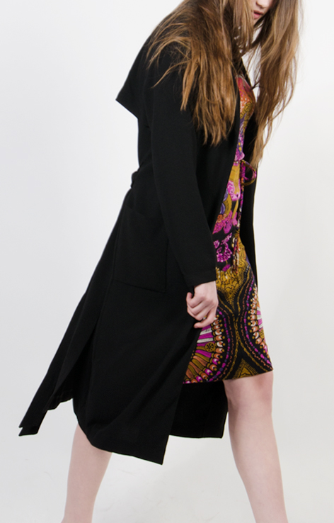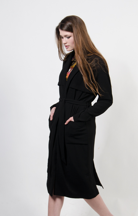 Czarny wiązany lekki płaszcz