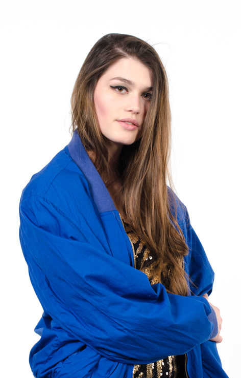Niebieska kurtka bomberka z emblematem