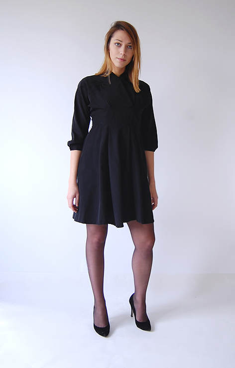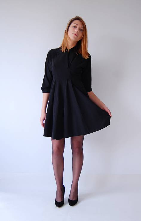 “Mała czarna” rozkloszowana sukienka
