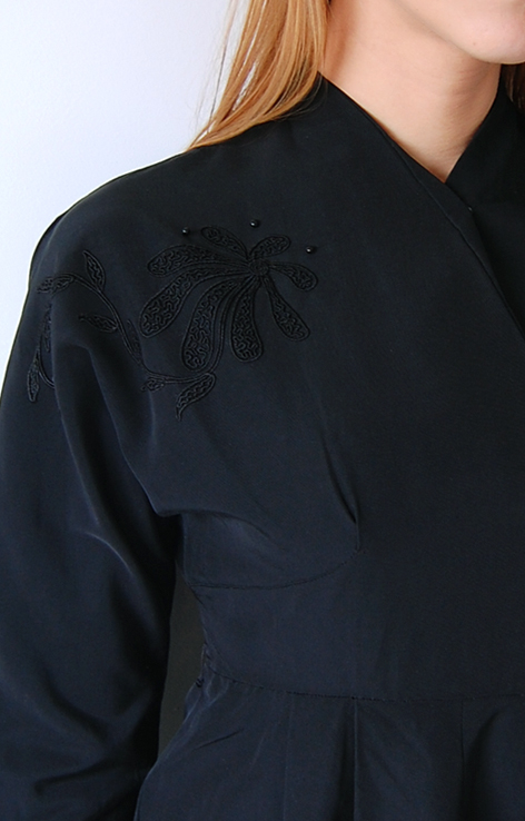 na dekolcie i części rękawów kwiatowy haft