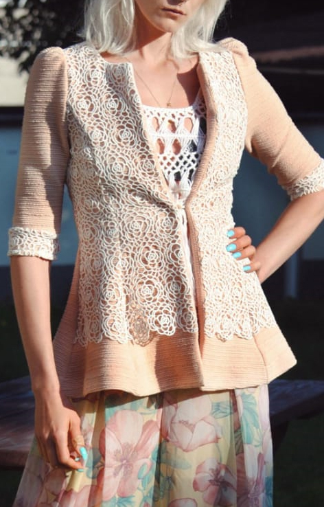 Pastelowy żakiet z koronką lata 60.