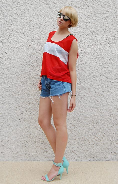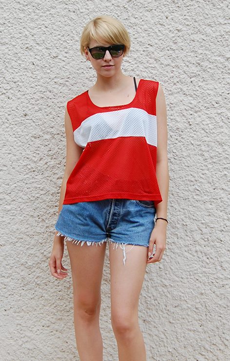 Biało czerwony siateczkowy top