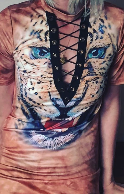Sukienka wiązany dekolt z tygrysem