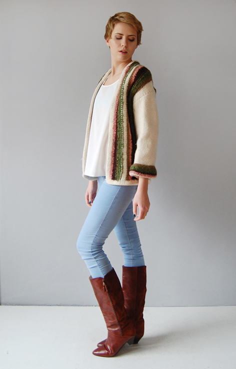 Wełniany zapinany sweter retro