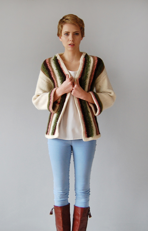 Wełniany sweter w pasy boho