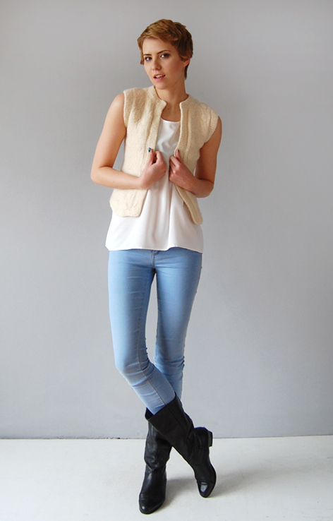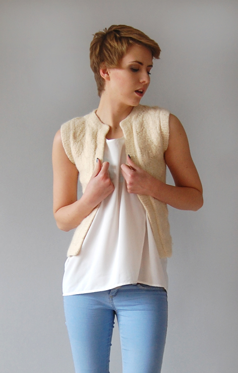 wełniana kamizelka z plecionym wzorem w stylu norweskim